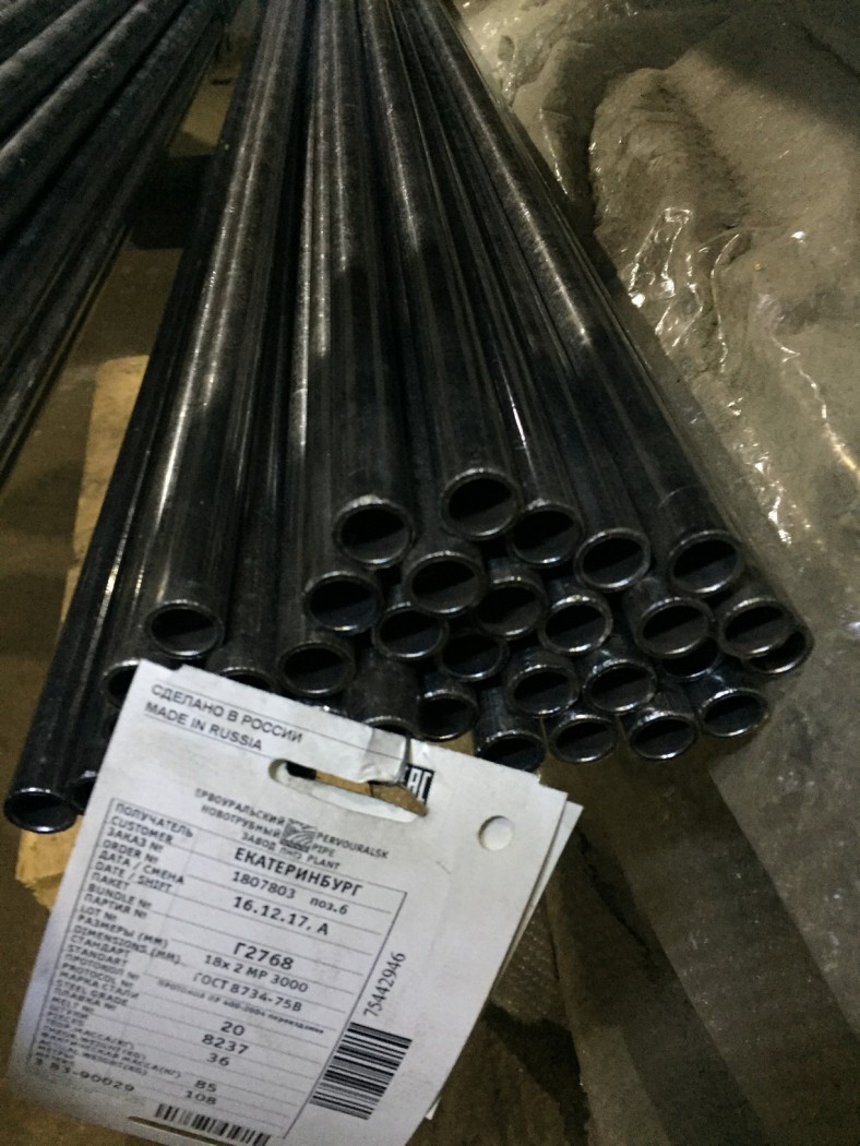 Сертификат на трубу 18х2 сталь 20 ГОСТ 8734-75