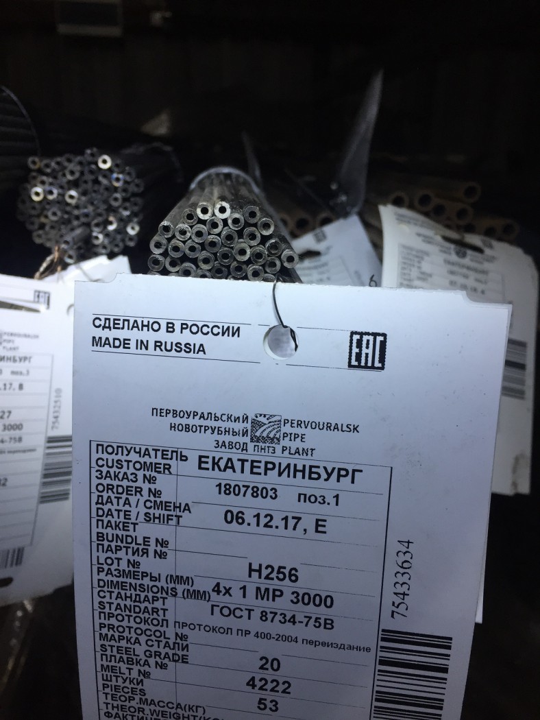 Образец сертификата на трубу 4х1 ГОСТ 8734-75, ст.20